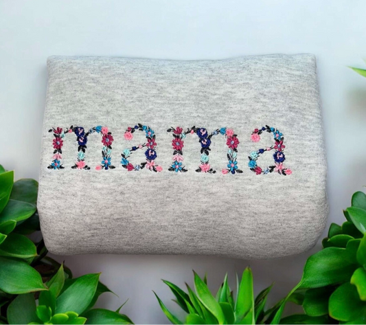 A Floral Embroidered MAMA sweater